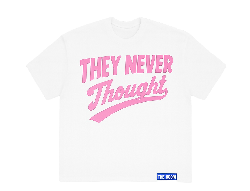 THEY NEVER THOUGHT Collegiate Script T-Shirt White/Pink